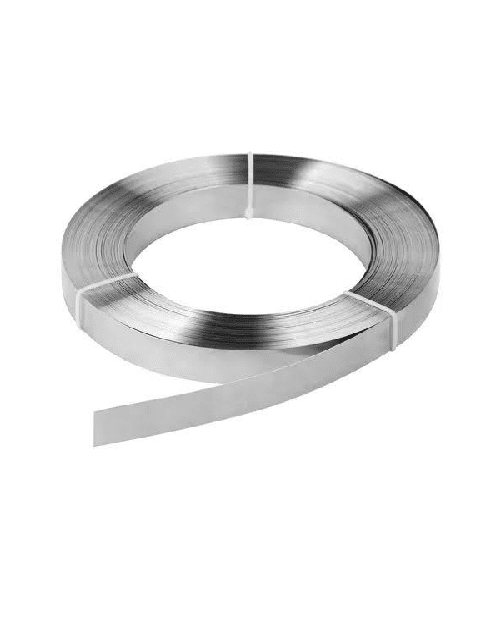 - Fleje de acero inoxidable de 5/8″ ancho x 30.5 mts de longitud, presentación caja de cartón.